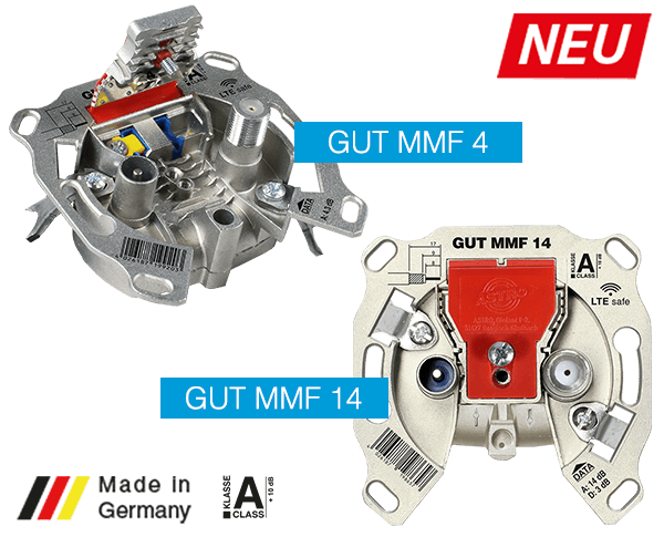 Die neuen Multimedia-Dosen der Serie MMF sind speziell für Vodafone konzipiert. Die flexiblen Dosen ohne festes Filter bieten eine Entkopplung zwischen 100 und 250 MHz. Das Einsatzgebiet kann damit z.B. heute ab 110 MHz laufen und zukünftig mit 200 MHz (Downstream ab 110 MHz, Upstream bis 204 MHz). Nach der Freigabe durch Vodafone werden die Dosen die bisherige MME-Serie ersetzen. Unitymedia setzt zunächst weiterhin die GUT MMX ein. Beide Typen befinden sich im neuen Korpus.
